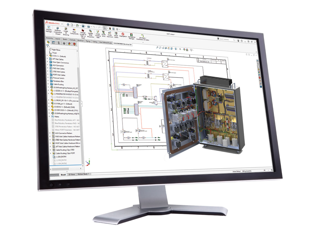 SOLIDWORKS® Electrical 3D enables you to easily integrate your electrical schematic designs into your SOLIDWORKS 3D product model.